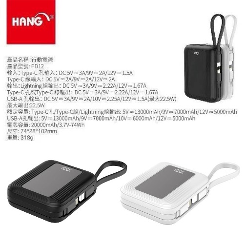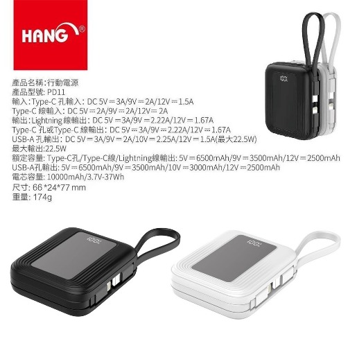 HANG 第二代超迷你自帶雙線行動電源 10000mAh 20000mAh