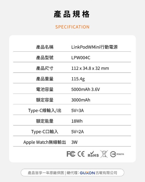 - 專為 Apple用戶設計,內建 USB-C 快充線 與 手錶磁吸充電