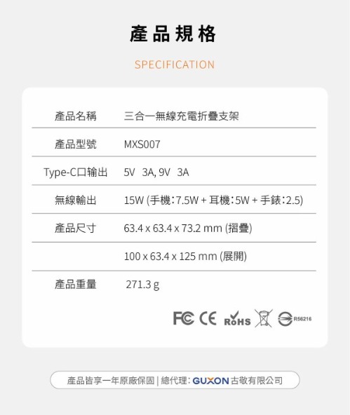- 【三合一無線充電】可同時為 iPhone、Apple Watch、AirPods 或 安卓無線充電手機充電,節省線材不需額外時間。