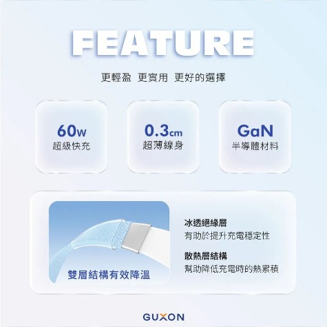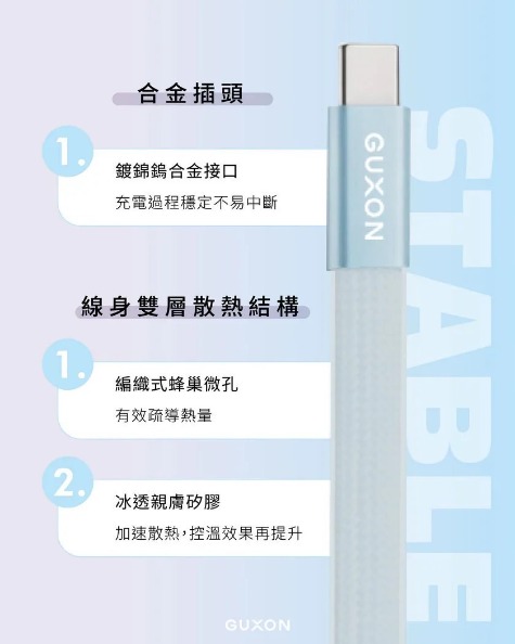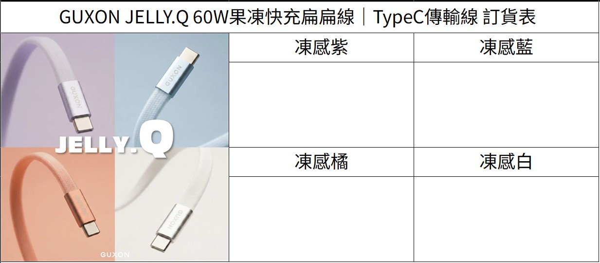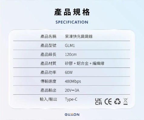 GUXON JELLY.Q 60W果凍快充扁扁線|TypeC傳輸線
