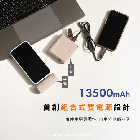 iWALK LINK組合式行動電源,創新主機+子機雙電源設計,最高總容量達13500mAh,滿足全天候外出需求。